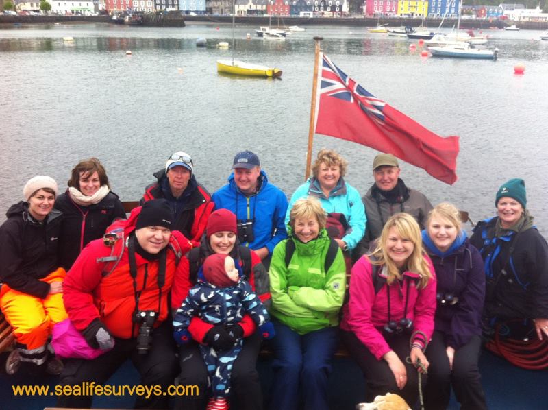 Wildlife Adventure passengers – 14th of June 2013. The eagles stole the show today with fantastic views of both white-tailed and golden eagles. The goldies were soaring above Sula Beag as we watched one getting mobbed by a buzzard, that’s when you can really appreciate how big they are! We also saw several hurries of feeding gannets, kittiwakes and auks which is always an exciting sight. Thankfully the rain held off for us… until we took the group photo!!